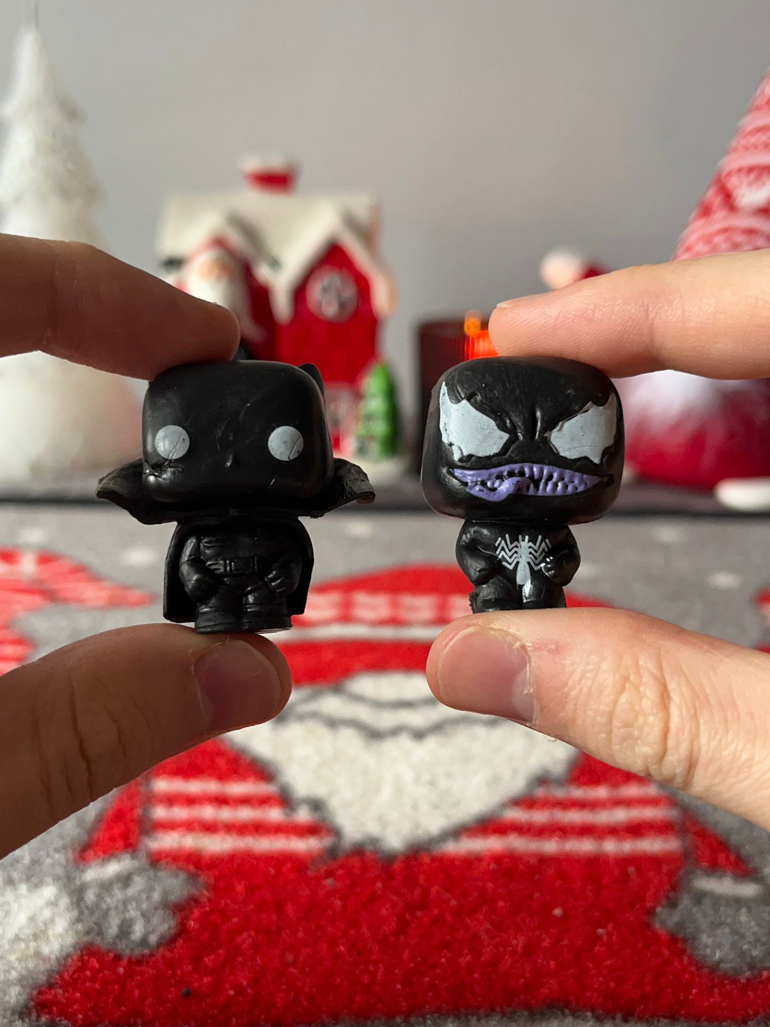 Każda figurka ma ok. 3 cm wysokości — idealny rozmiar, by ustawić je na biurku, półce lub pod choinką.